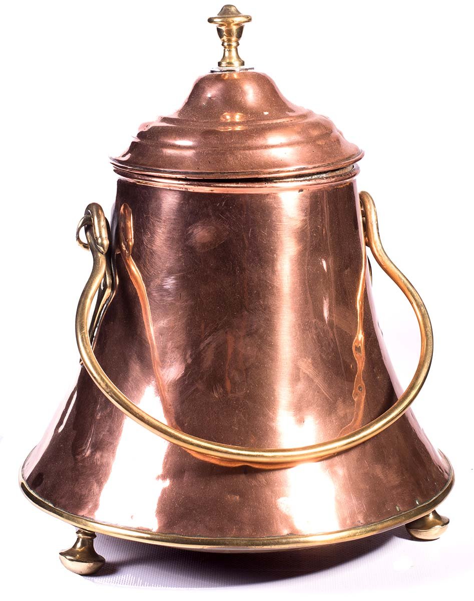 Pentola spegnifuoco in rame e ottone, probabile manifattura olandese, 1880 ca.